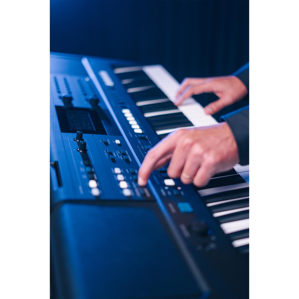 O Yamaha PSR-E583 é um teclado portátil de alta performance projetado para artistas que buscam versatilidade e expressividade. Com 61 teclas sensitivas, oferece uma vasta biblioteca de 890 sons realistas e 345 ritmos que abrangem gêneros globais e regionais. Seus controles intuitivos, como os botões Live Control e a entrada para microfone com efeitos, garantem total domínio criativo em apresentações ao vivo ou produções em estúdio.