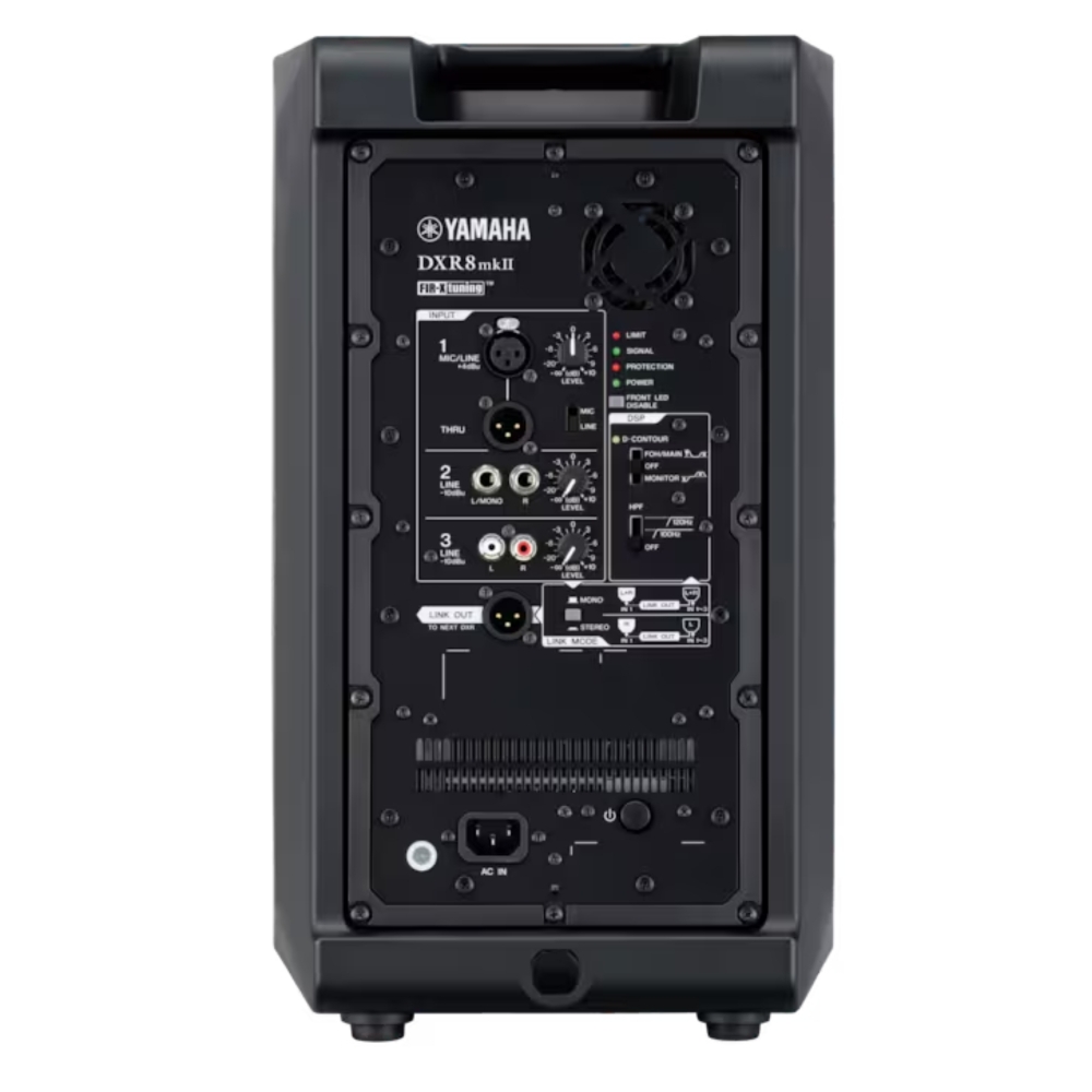 A Caixa Ativa Yamaha DXR8mkII é a mais compacta da série DXR, entregando impressionantes 1100W de potência com clareza excepcional. Equipada com um driver de compressão de neodímio de 1,75"" e woofer de 8"", oferece alta pressão sonora e definição profissional. Seu design robusto em ABS e o processamento DSP de 48 bits garantem máxima fidelidade e durabilidade para eventos, igrejas e sonorização ao vivo. 1kg mais leve que o modelo anterior.