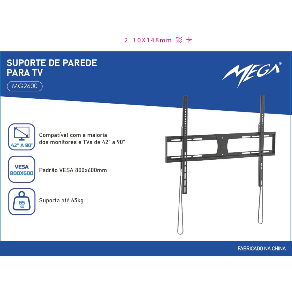 O Suporte Fixo de Parede para TV da Mega MG2600 foi desenvolvido para oferecer máxima segurança, estabilidade e compatibilidade com televisores de diferentes tamanhos, sendo ideal para instalações em parede ou painel. Fabricado em aço carbono de alta resistência, garante firmeza total e durabilidade no uso diário, mantendo a TV bem-posicionada e o ambiente organizado. Além de suportar até 65kg.